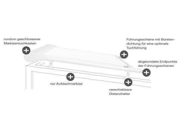 Unsere Wintergartenmarkisen aus Köln können mit passenden Zusatzausstattungen individualisiert und an Ihre Bedürfnisse angepasst werden. Wählen Sie dabei aus dem folgenden optionalen Zubehör: