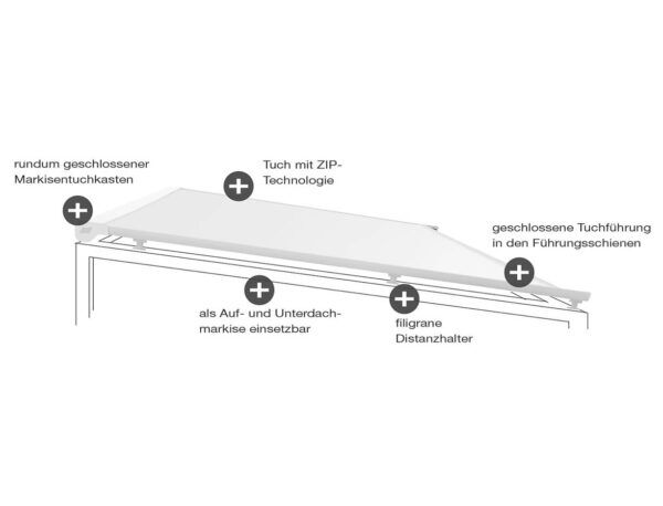 Maximalbreite (Breite x Ausfall): Unterdachmontage 600 x 450 cm