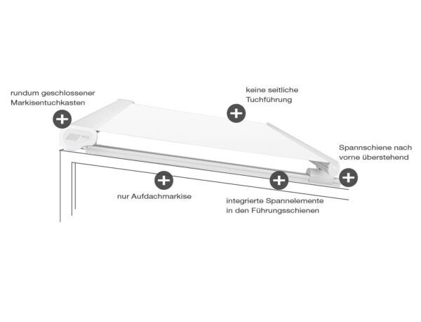Maximalbreite (Breite x Ausfall): Aufdachmontage 500 x 450 cm
